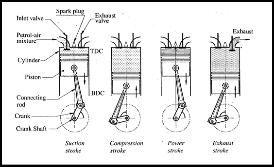 - At the end of the exhaust stroke, the exhaust valve is closed and inlet valve will open. Then there will be again a suction stroke and the same cycle will be repeated.